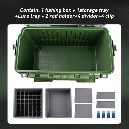 BaseBox Pro — Cutie Pescuit cu Suport Lansetă & Organizare Completă